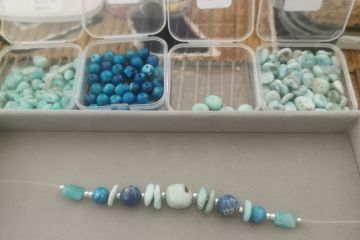 Vous choisissez vos pierres (amazonite, agate, jaspe impérial, larimar…), vous apprenez les bases du montage, puis vous composez votre bracelet selon vos goûts (couleurs, énergie, style).